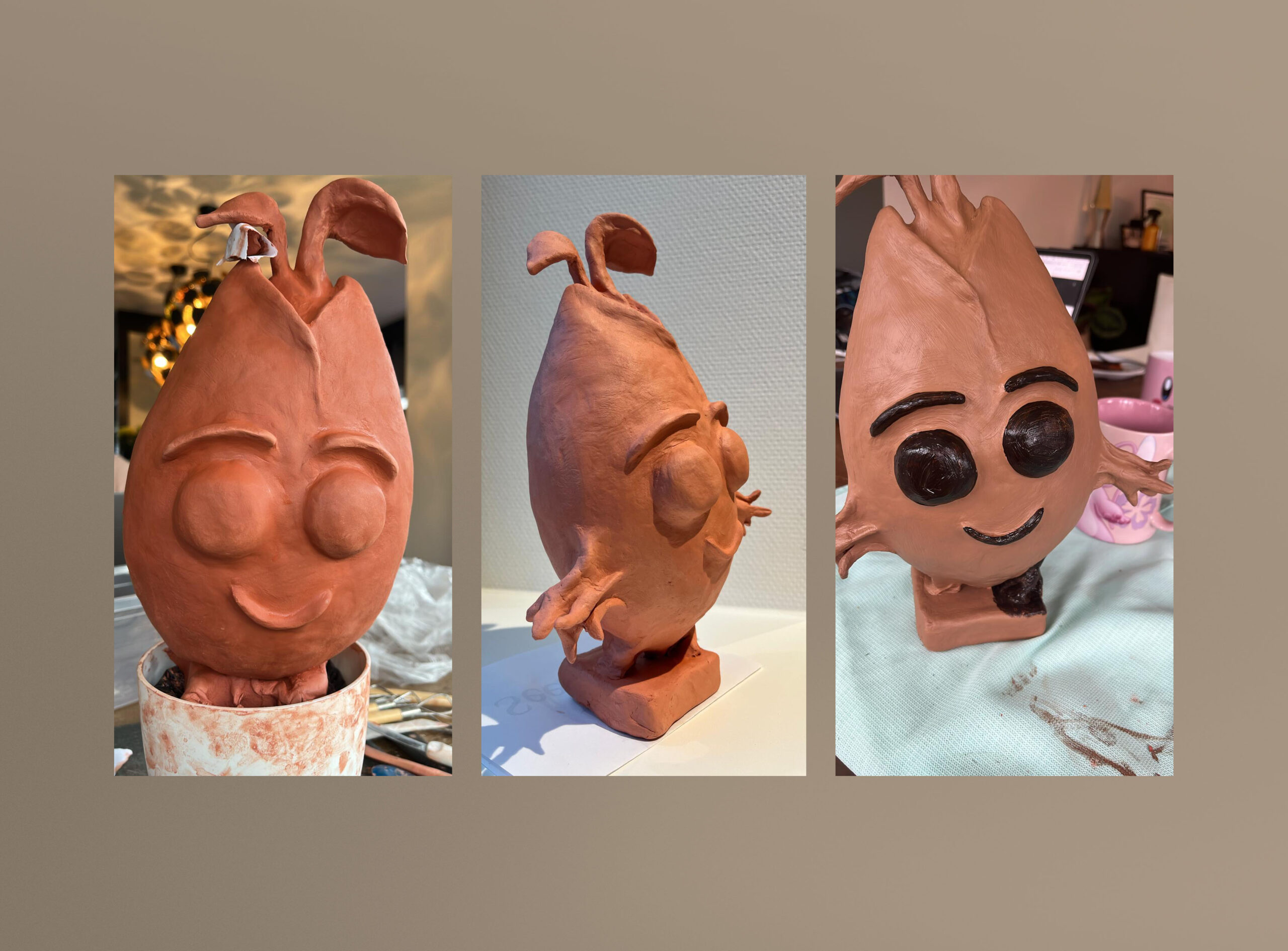 - een mascotte ontworpen en vertaald naar 3D (klei model zelf en XL laten maken)